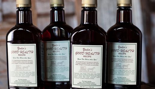 The Yoder’s Good Health contains Cider vinegar, water, apple juice, grape juice, andtinctures of ginseng, goldenseal, echinacea, valerian, ginger,black cohosh, chamomile, black walnut, licorice root, anise, cinnamon, cloves, chickweed, fenugreek, potassium sorbate. Do not use while pregnant.